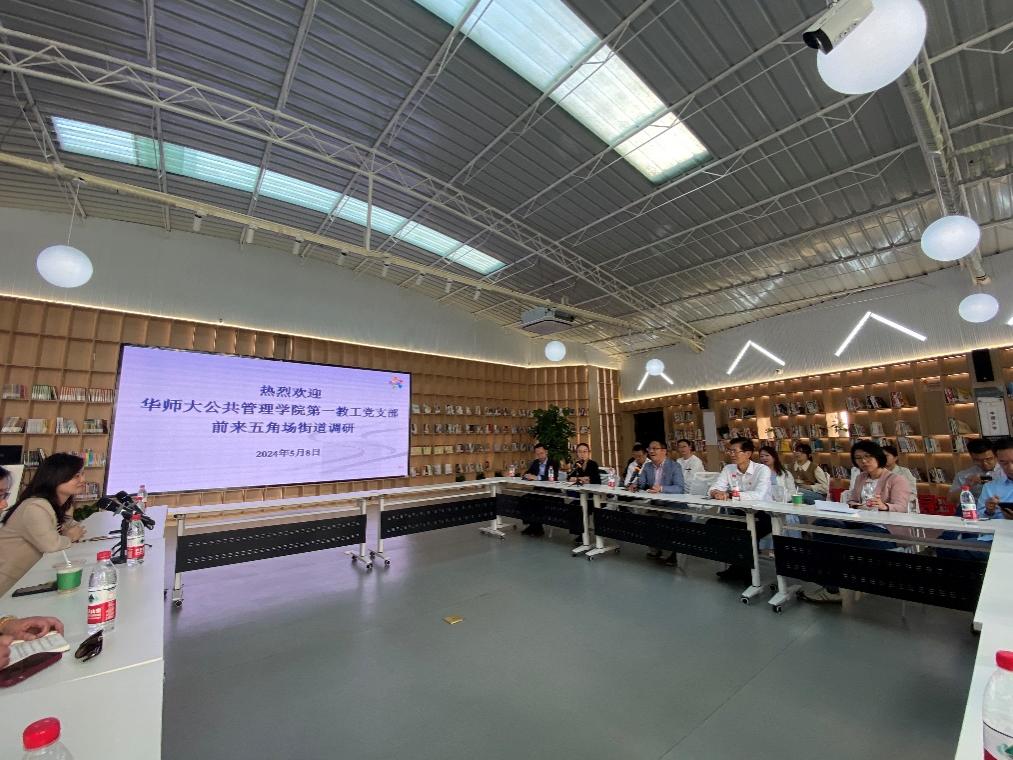 为加强学院党员师生对现代社区治理的理解和实践能力,推动党建工作与学科建设深度融合,在海角社区 党委副书记(主持工作)高恩新和副书记王婧的带领下,教工第一党支部联合本硕党支部共同组织党员师生于5月8日下午同赴杨浦区五角场街道党工委开展标杆社区治理学习交流活动。