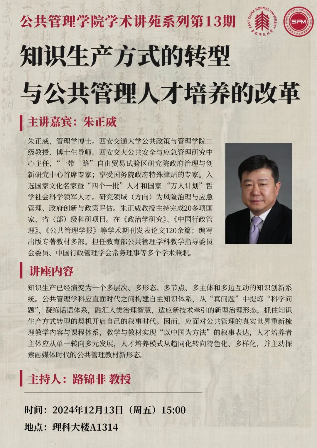 讲座预告 | 知识生产方式的转型与公共管理人才培养的改革