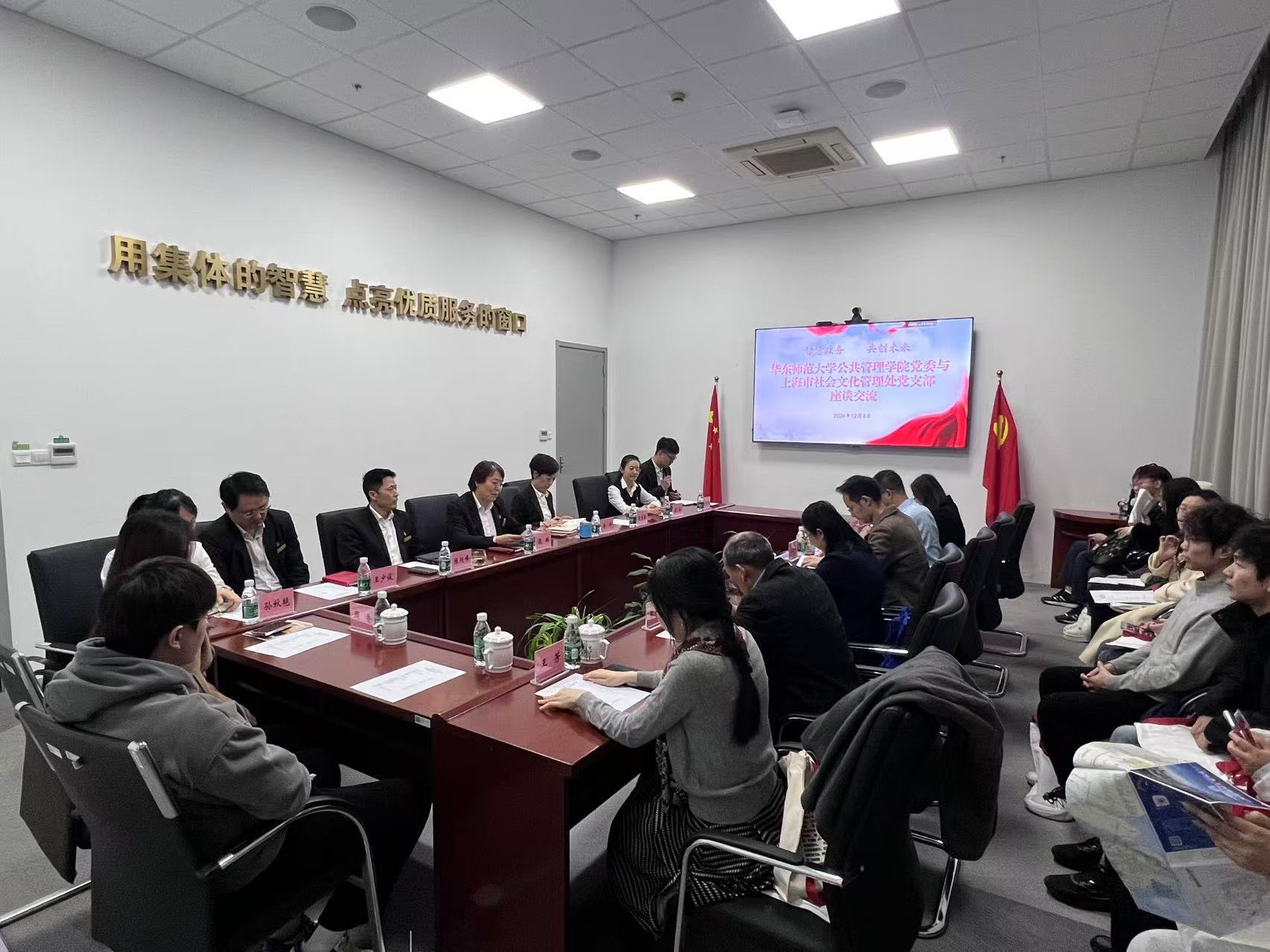 随后,学院党员师生与社管处党员在会议室开展座谈交流。殷瑛代表单位对公管学院领导和同学们的到访表示热烈欢迎,分享了社管处党支部在强化政治建设、提升行政效能、共建人民城市、擦亮品牌特色方面不断探索创新、开拓进取的实践举措。她表示,自与公管学院开展党建共建合作以来,双方发挥各自优势,聚焦数字治理、人才培育、实习实训等方面开战了广泛而深入的合作,形成了“资源有效对接、成果及时共享、发展相互促进”的合作局面,期待在下一阶段进一步拓展合作渠道、优化互动机制,探索出更多政校合作的新模式、新做法,为专业人才的持续输出、政务服务的数字化转型全面赋能。