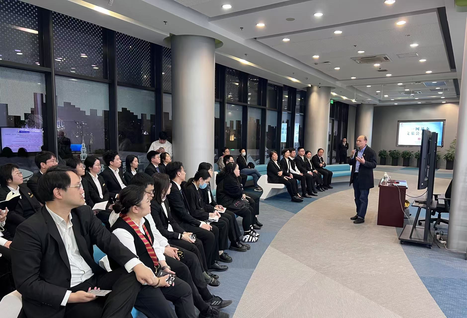 活动伊始,学院党员师生首先参观了上海数字文旅中心的政务服务大厅,包括受理窗口、数字人、24小时自助服务区、红色微书屋等。现场上海市社会文化管理处党支部书记殷瑛对社管处日常工作开展情况、创新举措、特色成效等方面的介绍,重点讲解了政务大厅布置理念,受理服务工作流程以及人性化便民举措创新等。