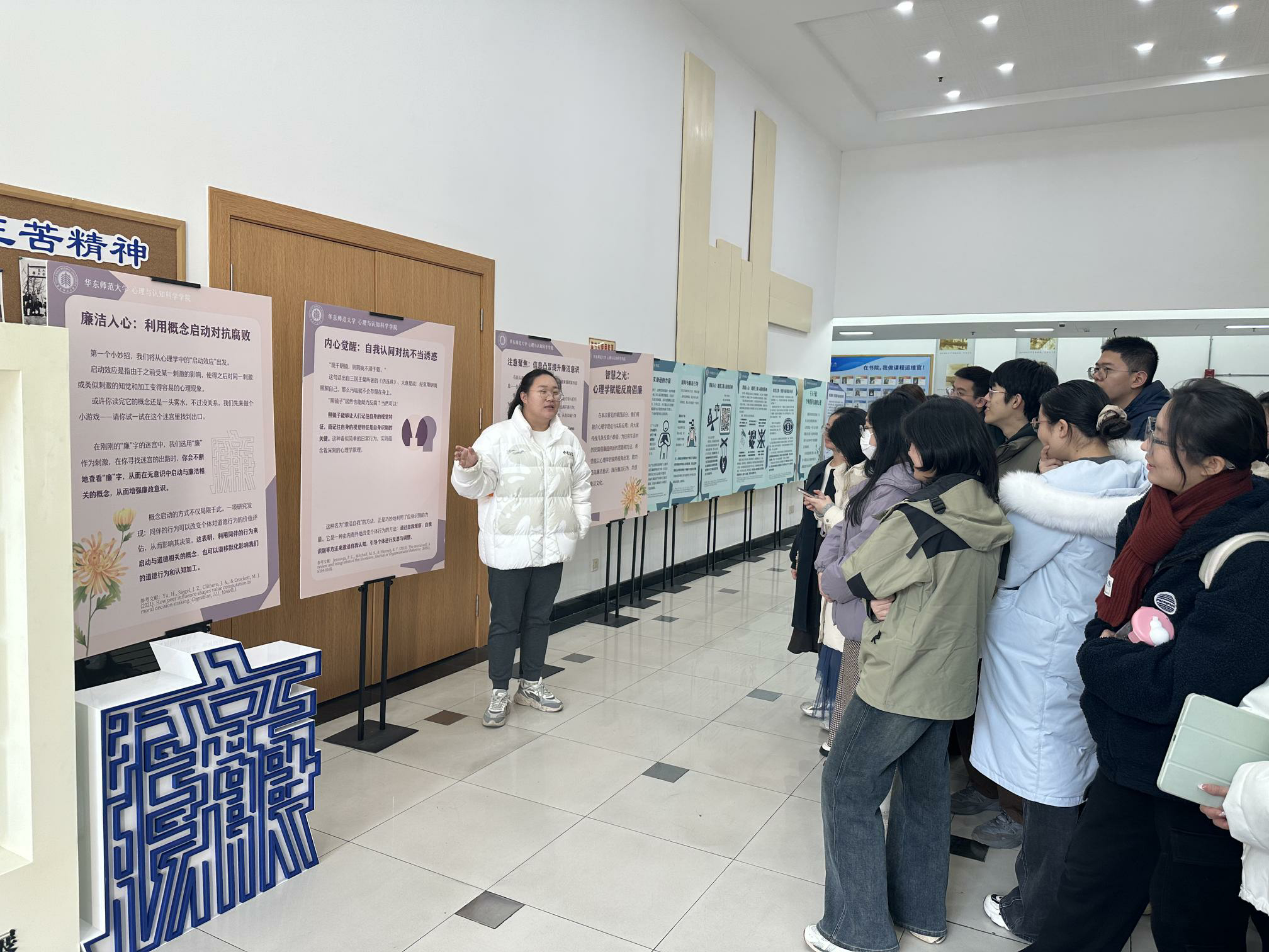“智慧之光:心理学赋能反腐倡廉”展区则展示了心理学在反腐倡廉中的广泛应用与成效。讲解员老师通过生动的案例和专业知识的有效应用,让参观者直观感受到心理学的力量,增强了对心理学原理应用于反腐倡廉实践的认识。