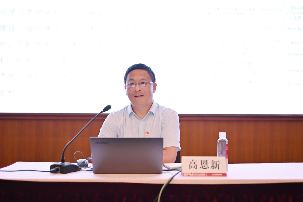 高恩新首先强调了党的纪律建设的重要性,他指出,全党开展党纪学习教育是以习近平同志为核心的党中央作出的重大决策部署,是协同推进全面从严治党向纵深发展的重要举措。作为承担着立德树人重要职责的高校领域,更需要推动党纪学习教育走深走实,全体师生党员要真正把党的纪律规矩转化为政治自觉、思想自觉、行动自觉,在教学、科研、学习、生活中坚定不移地做到知纪明纪守纪,为党的教育事业和中华民族伟大复兴做出更大的贡献。
