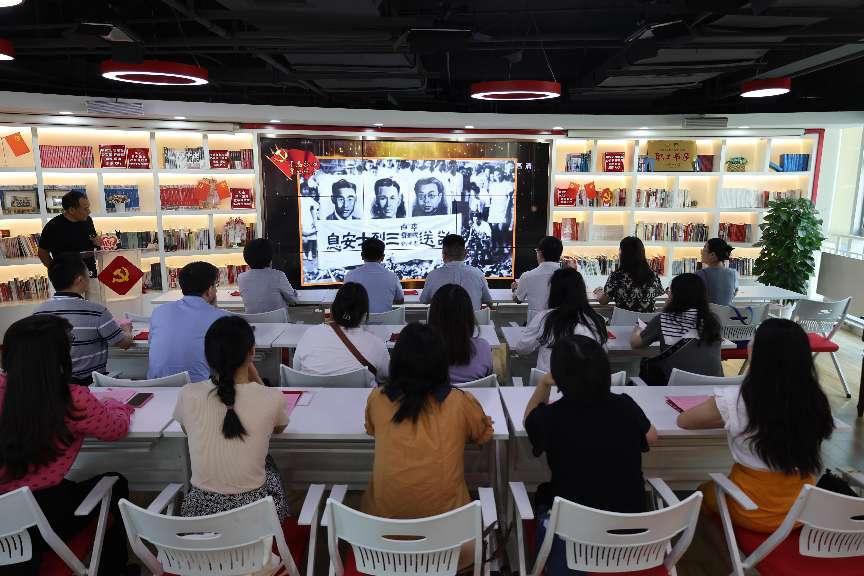 活动正式开始后,大家首先观看《永不消逝的电波》中李白烈士的生平介绍,他的革命信念、对党忠诚如同影片中的电波一般,穿越时空,震撼着每一个人的心灵。
