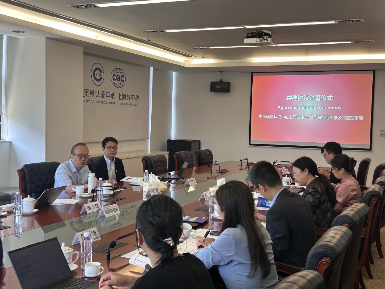 与中国质量认证中心上海分中心联合举办的党建共建活动在上海市浦东新区金海路1000号金领之都园区21号楼会议室顺利举行,完成了业务签约仪式暨中央八项规定专题党课活动,双方党组织负责人、业务骨干及党员代表共10余人参会,共谋党建与业务深度融合新路径,推动党风廉政建设走深走实,会议由中国质量认证中心上海分中心主任吴蔚主持会议。