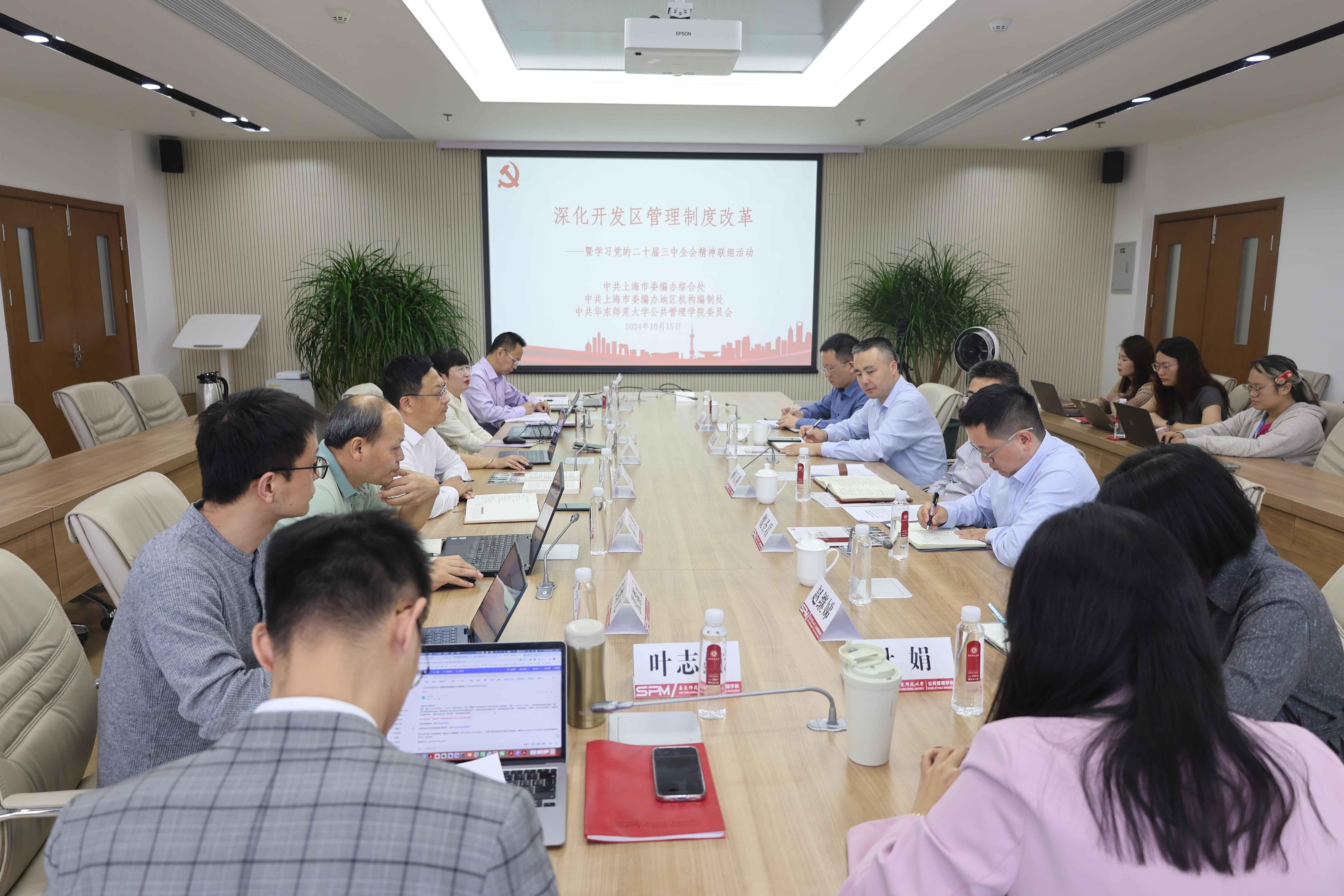 2024年10月15日,海角社区 党委与中共上海市委编办综合处、地区机构编制处在理科大楼1314会议室围绕“深化开发区管理体制改革”开展学习党的二十届三中全会精神联组活动。会议由海角社区 党委副书记(主持工作)高恩新主持。